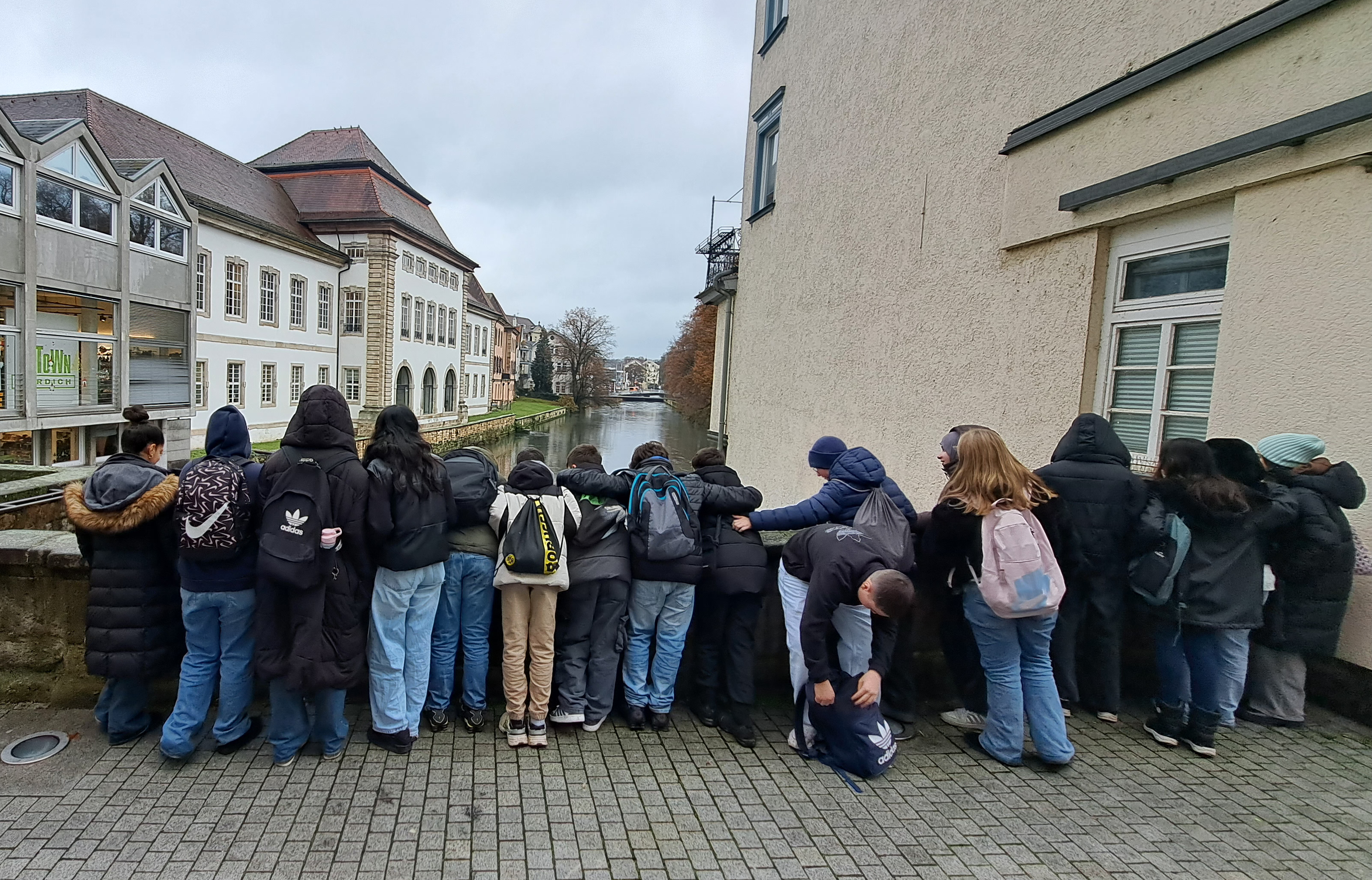 Gleich morgens haben wir uns nicht in der Schule im Klassenzimmer getroffen, sondern an der Bushaltestelle, um mit dem Bus nach Esslingen zu fahren.