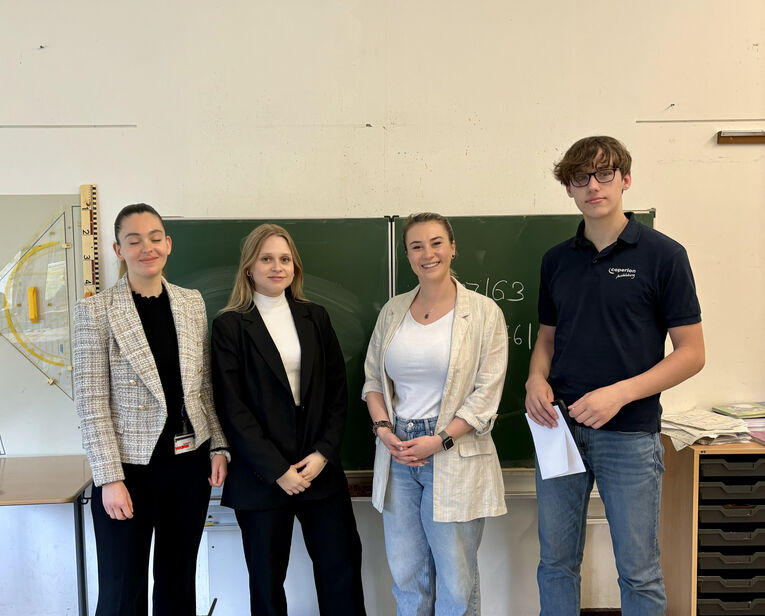 Kurz vor dem Start in die Pfingstferien haben uns drei Ausbildungsbotschafter (kurz: ABBOs) zusammen mit der Koordinatorin der IHK Stuttgart besucht. In einer kurzen Präsentation stellte jeder ABBO zunächst den eigenen Ausbildungsberuf (Kauffrau/-mann für Büromanagement, Personaldienstleistungskauffrau/-mann, Mechatroniker/in) vor. Danach hatten die Schüler:innen die Möglichkeit ihre Fragen loszuwerden, sei es zur Ausbildung, dem Ausbildungsbetrieb, dem Unterricht in der Berufsschule oder zu den unterschiedlichen Lebenswegen. Es war auf jeden Fall ein sehr informativer und abwechslungsreicher Vormittag und wir sagen DANKE für die tollen Einblicke in die Welt der Ausbildung!