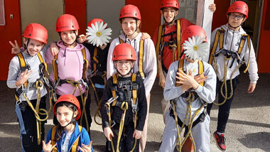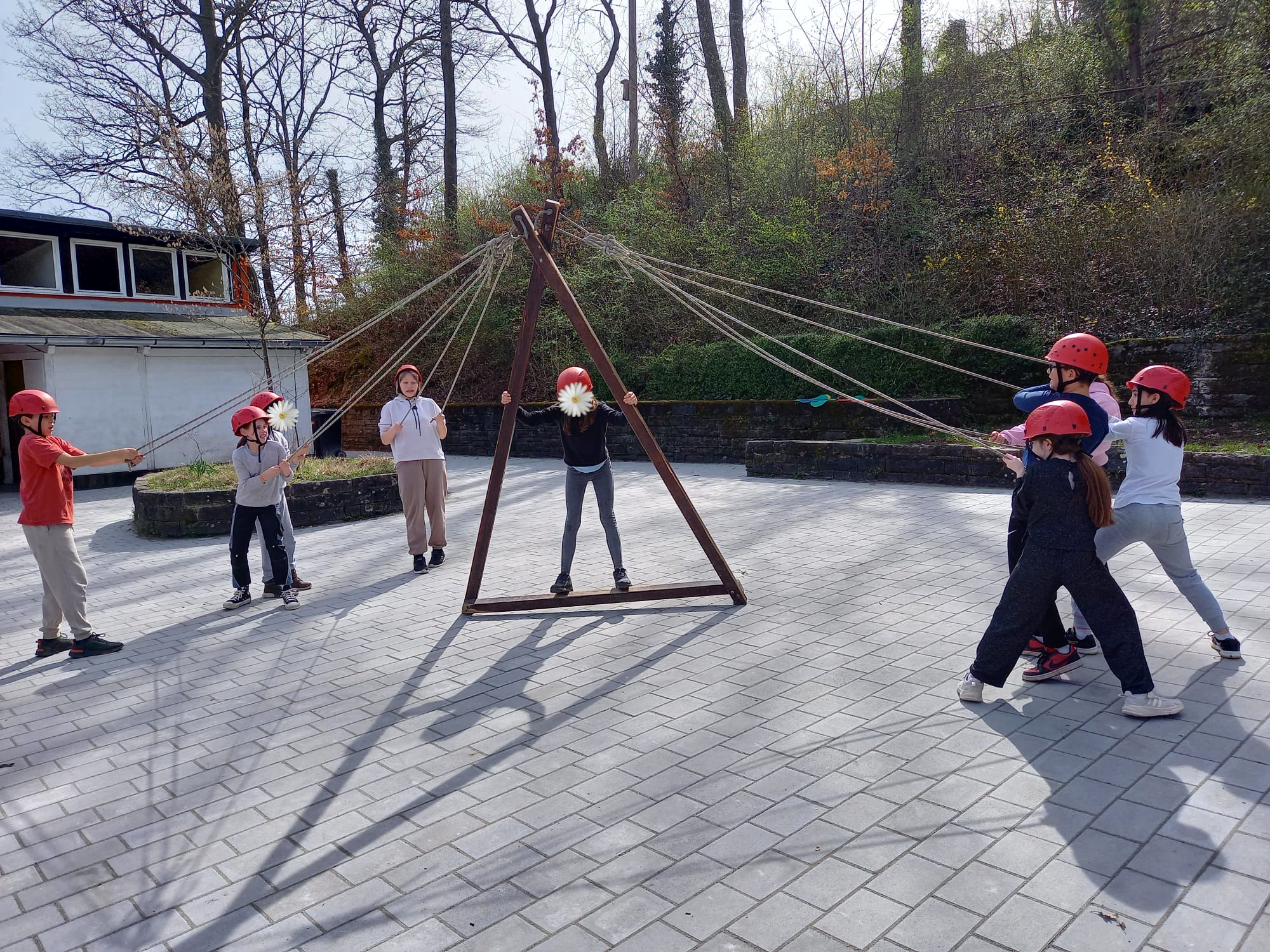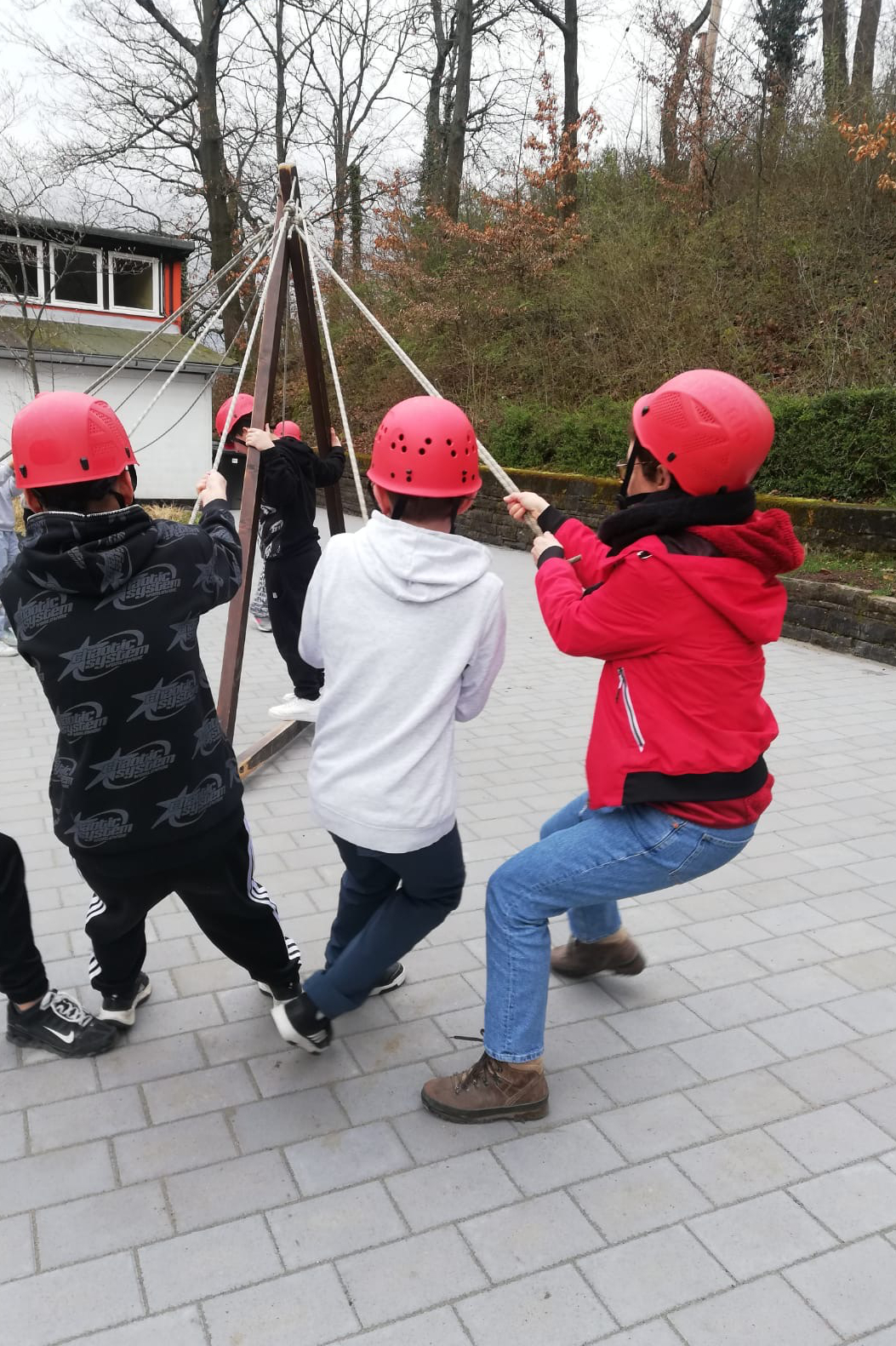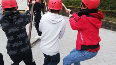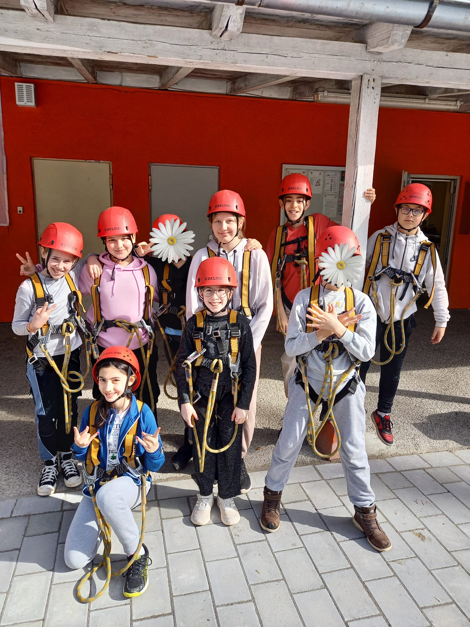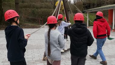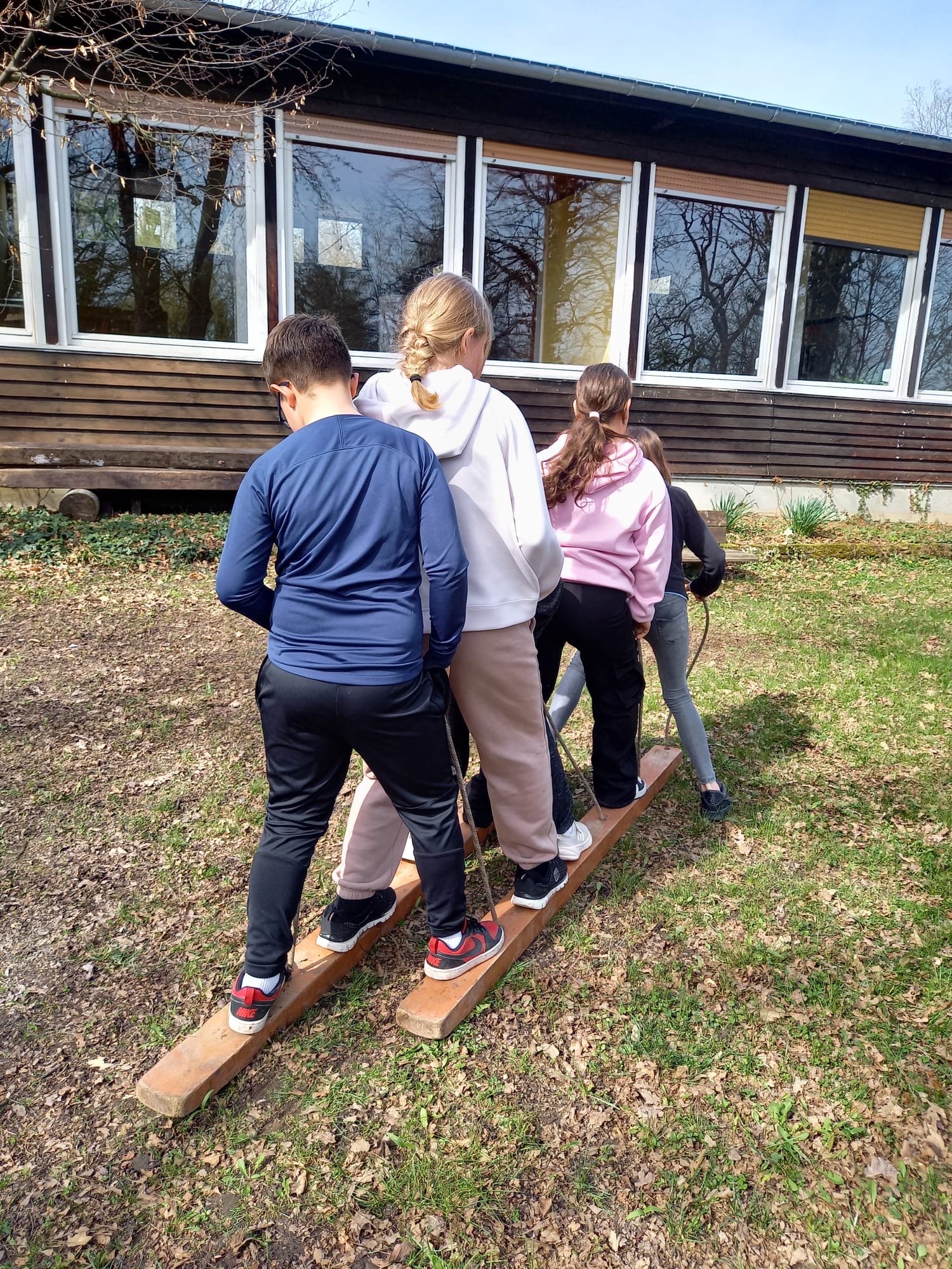 Das zweite Mal in Folge waren unsere zwei Schulsozialarbeiterinnen mit Kolleginnen der Mobilen Jugendarbeit Heumaden mit unseren Fünftklässler:innen auf dem Aktivpark Bergheide. Hier gibt es die Möglichkeit, ein naturbelassenes Gelände für erlebnispädagogische Übungen und einen Niedrigseilparcours sowie Hochseilelemente zu nutzen. In der fünften Klasse sind die Schüler:innen meist ganz neu zusammengemischt und es ist für die Klassengemeinschaft sehr zielführend, pädagogische Gruppen- und Kooperationsübungen durchzuführen. Auf der Bergheide hatten die Schüler:innen nun mit ihren Schulsozialarbeiterinnen die Möglichkeit dazu und durften zusätzlich erste Klettererfahrungen sammeln. Es wurde zusammen gearbeitet, Grenzen und Ängste wurden überwunden, die Klassen haben sich noch ein bisschen besser kennengelernt und sind enger zusammengewachsen. Vor allem hatten wir gemeinsam viel Spaß.