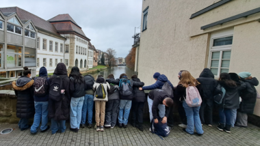 Gleich morgens haben wir uns nicht in der Schule im Klassenzimmer getroffen, sondern an der Bushaltestelle, um mit dem Bus nach Esslingen zu fahren.